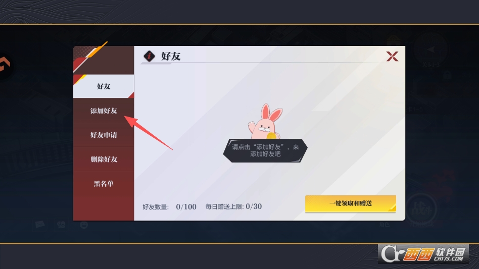 来到好友界面,点击左侧列表中的添加好友的选项