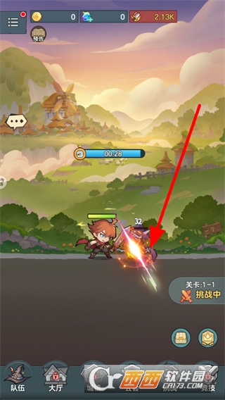 1、进入游戏后点击“挑战”,开始进行冒险任务;