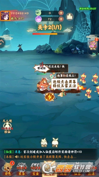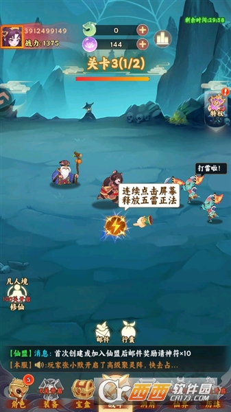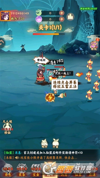 自动战斗 + 轻度策略结合:关卡推进全程自动战斗,无需手动操控走位与普攻,仅需关键时刻点击释放 “五雷正法” 等技能触发高额伤害;同时角色间存在属性克制(如金克木、水克火)与技能联动,需根据敌人阵容调整己方搭配,后期高难度关卡需精准策略破局。