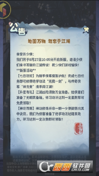 1、点击开始游戏,放心去闯荡江湖武林。