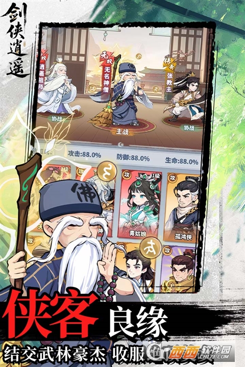 剑侠逍遥手游最新版2026是一款武侠江湖主题的放置卡牌策略对战游戏,玩家将进入充满无限与机遇的江湖,闯荡出一片属于自己的天地。招募各种侠客伙伴,前往各地副本进行挑战 ,获取强大的招式技能书,提升自己队伍的属性与战斗力,丰富的武学,装备种类,各种效果与能力等你解锁。