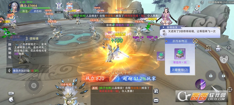 7、玩家还可以在三倍秘境通过打怪掉落的经验丹迅速升级,可以实现一丹一级的效果。