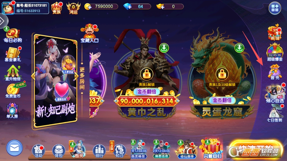 千倍炮台倍率爽感拉满,一炮万金不是梦。炮台最高支持千倍倍率输出,搭配全屏炸弹、冰冻锁定等技能,能快速收割大范围鱼群与高阶BOSS。超高爆率设定让普通炮弹也能高频爆金,满屏光柱特效带来极强的视觉冲击。