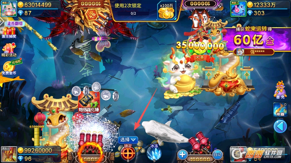 2. 倍率上限更高,爆金爽感更足。多数同类游戏炮台倍率上限较低,难以满足玩家高爆需求。这款游戏千炮为基础倍率,后续还能通过锻造升级至更高倍率,真正实现一炮万金的震撼体验,爽感直接拉满。