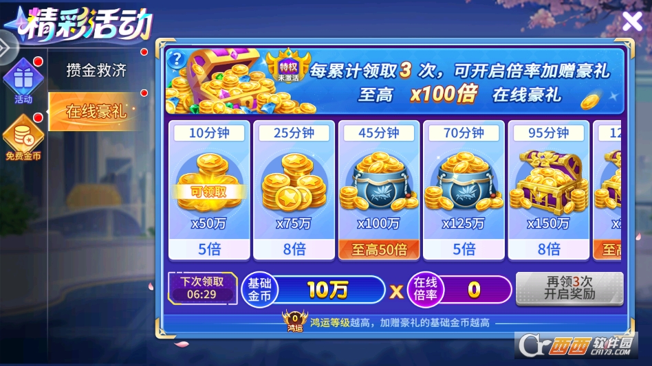 福利体系扎实,让冒险无后顾之忧。每日登录、在线时长、完成冒险任务都能领取大量金币和道具,破产后还有救济金快速回血。定期开启的主题活动的奖励加码,不仅有虚拟资源,还能赢取话费等实物奖励,让捕鱼乐趣不止于娱乐。
