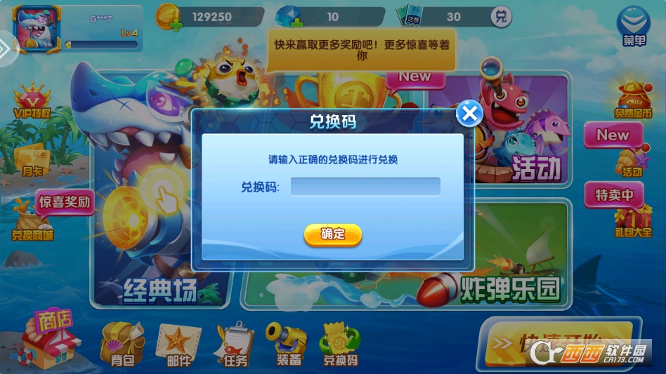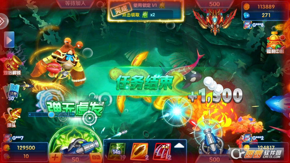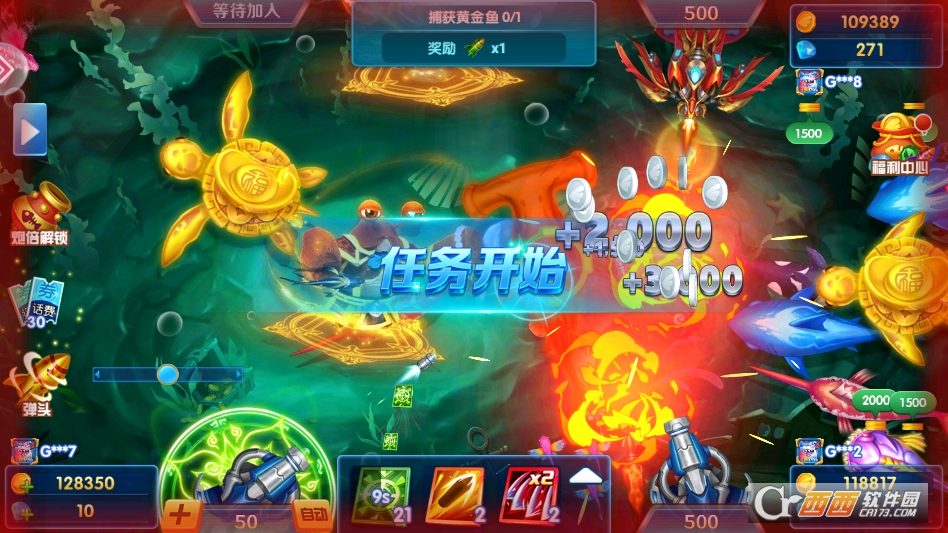 1. 基础捕鱼与装备升级玩法。玩家操控炮台瞄准鱼群发射炮弹,根据鱼种价值与捕获难度调整炮台倍率。通过捕鱼与任务获取金币和升级材料,提升炮台等级与威力,解锁锁定炮弹、鱼雷、炸弹等道具,合理使用可大幅提升捕获效率,轻松拿下高级鱼种。