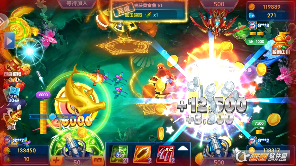 1. 3D画质与炫酷特效加持,沉浸感拉满。采用超高清3D建模与电影级特效,海底场景细节丰富,BOSS出现时会触发无缝衔接的场景变化,炮弹发射与鱼群捕获时的光影效果震撼夺目,搭配立体环绕音效,带来极致视听体验。