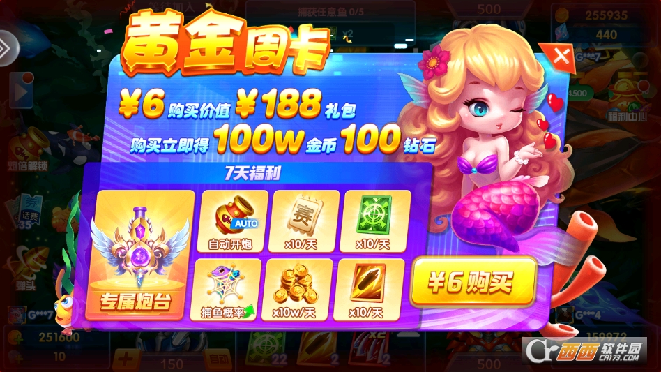 炮台锻造升级体系完善,战力提升看得见。支持炮台自由锻造升级,从基础倍率逐步解锁万倍火力,升级后不仅威力大增,还能解锁专属炫酷外观。升级材料可通过日常捕鱼、任务奖励轻松获取,无需氪金也能打造强力炮台。