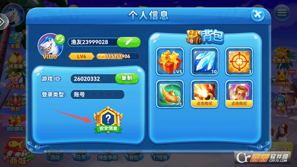 点击游戏主页左上角你的个人头像,打开个人中心后,点击下方的安全信息按钮