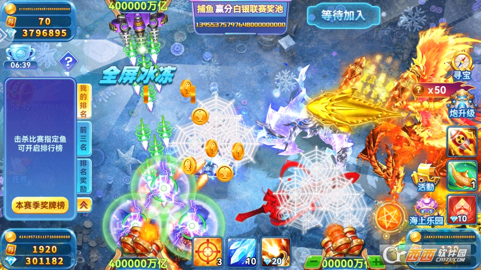 1. 万人同屏竞技玩法。支持全球玩家实时同屏对战,玩家可自由进入各类竞技渔场,与其他玩家比拼捕鱼积分与倍率收益。抢鱼头、争稀有鱼种,实时排行榜展示战力排名,排名靠前可领取金币、高阶道具等丰厚奖励,竞技氛围拉满。