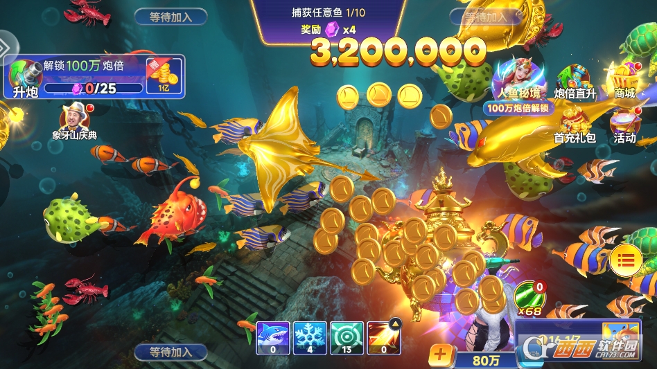 支持单人休闲与多人联机双重模式,兼顾不同玩家需求。玩家可独自探索新手专属的深海领主渔场、奇幻的人鱼秘境等特色场景,挑战福寿醒狮、深渊领主等强力BOSS;也能与好友实时组队联机,语音开黑交流技巧,协同围猎高倍率鱼种,共享爆金喜悦,告别孤单捕鱼的枯燥。