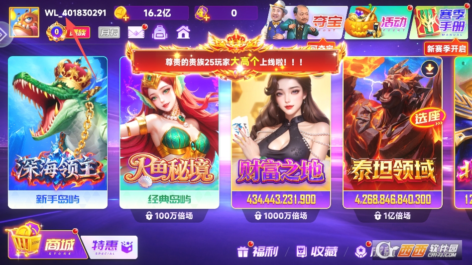 游戏福利体系诚意拉满,不肝不氪也能畅玩全场。登录就送炫酷炮台、海量鱼币与道具,每日签到、在线时长奖励、救济金等福利不间断,老玩家回归更能领取长达一个月的专属豪礼。赛季更新频繁,新增渔场、BOSS与主题活动,持续为海底冒险注入新鲜活力。内置自动捕鱼模式,玩累了可开启挂机功能,睡着也能打BOSS积累资源。按炮台强度划分1倍场、30倍场和300倍场,确保玩家匹配到实力相近的对手或队友,每个场次还设有幸运珍珠、护宝狂鲨等特色小游戏,进一步丰富冒险体验。