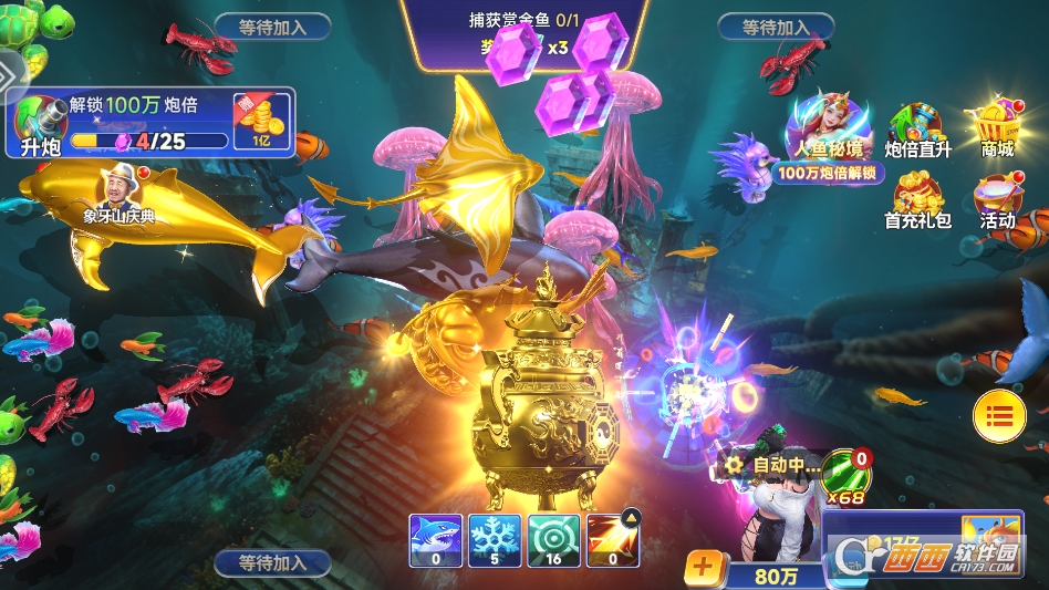 多元玩法模式,适配全类型玩家。涵盖单人BOSS挑战、四人同屏共斗、公会竞技等多种玩法,每个渔场都有专属鱼种与特色机制。1倍场的幸运珍珠、30倍场的护宝狂鲨、300倍场的皇冠之战,不同场次玩法各异,避免捕鱼过程陷入单调,满足休闲与竞技的双重需求。