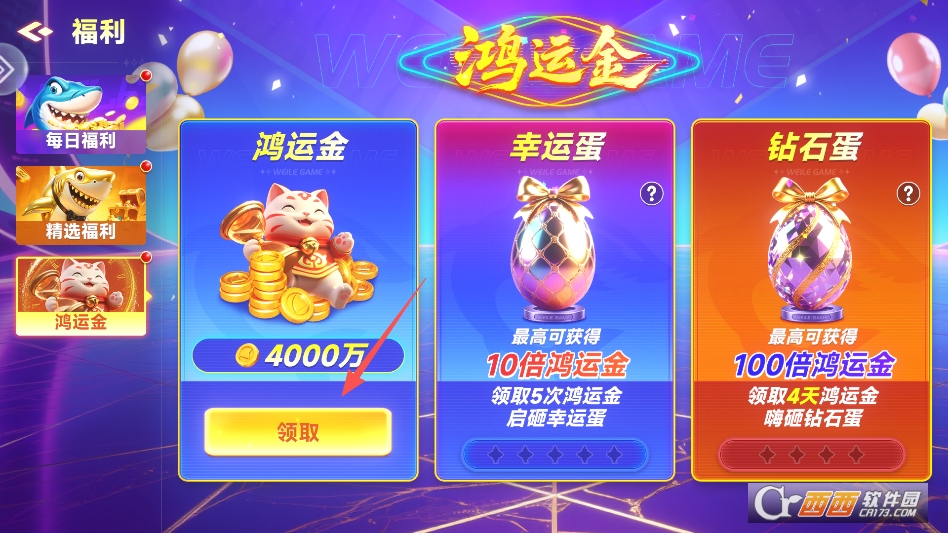 没金币了不要紧,点击游戏主页面下方的福利按钮