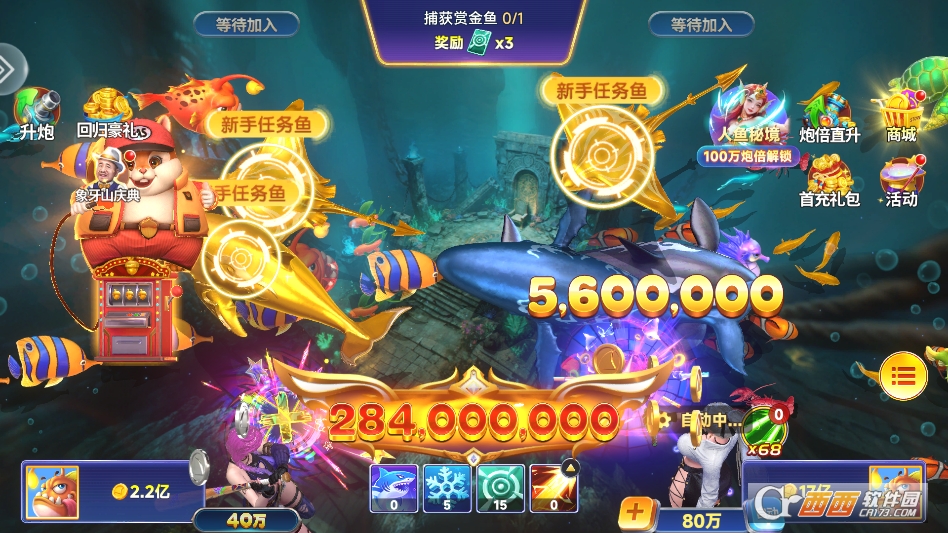 新增“飞黄腾达”“福寿安康”两款惊喜礼包,等级上限扩至150级,提供更多长期目标。礼包内含海量金币、炮台升级材料与专属装扮,可通过完成指定任务或活动获取。同时新增限弹挑战、护宝狂鲨等限时玩法,玩法不重样,持续为玩家带来新鲜感。