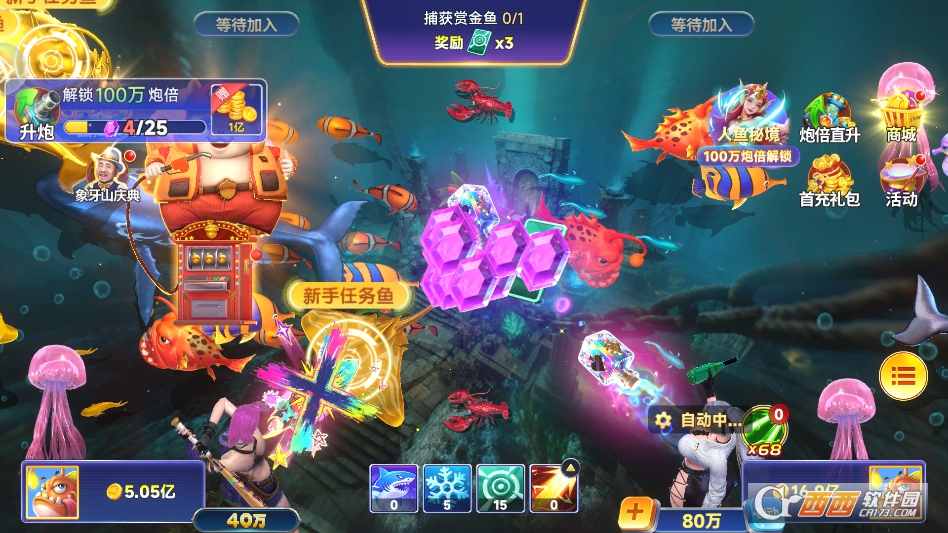 采用3D引擎打造高清细腻的海底世界,从憨态可掬的小丑鱼到霸气的机械鲨,从山海经主题的福寿醒狮到三国风格的金甲吕布,各类海洋生物活灵活现。场景细节打磨到位,珊瑚丛、水草等元素层次分明,爆金时的光影特效炫酷炸裂,视觉体验堪比端游,让每一次捕鱼都像一场欢乐的海底冒险。