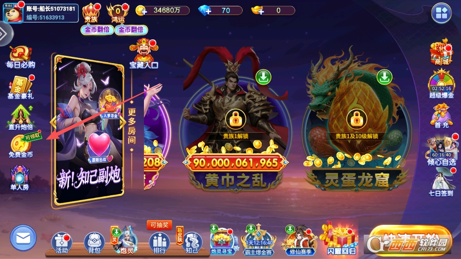 点击游戏主界面左侧的免费金币福利按钮