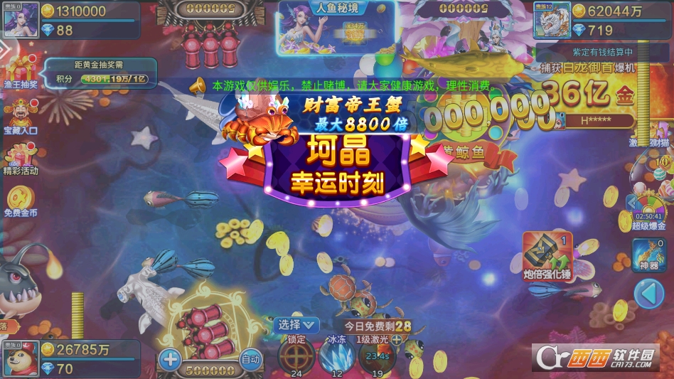 炮台升级需循序渐进,新手初期建议先在低倍率房间积累金币,将炮台升至50倍后再尝试高阶渔场,避免盲目升倍导致金币消耗过快。捕获高倍BOSS时,建议预留锁定、能量炮等道具,找准时机释放可提升捕获概率。