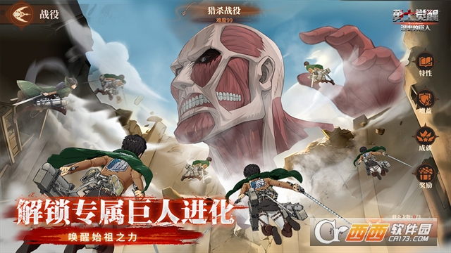 勇士觉醒是一款获得《进击的巨人》正版授权的回合制放置战斗手游,精准还原原作世界观与热血内核,让玩家沉浸式踏入人类与巨人对抗的残酷世界。玩家将化身主角艾伦·耶格尔,意外坠入时空裂隙,开启一段跨越时空的冒险旅程,肩负起驱逐巨人、守护人类的使命,重温“为自由献出心脏”的热血信念。