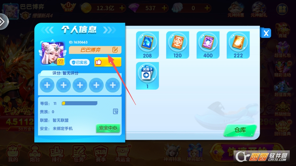 进入游戏之后,点击游戏主界面左上角的你的头像