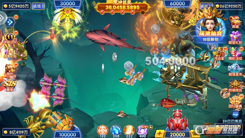 1. 新手注册登录大礼包,助力快速起步。新号注册登录即送专属大礼包,内含海量金币、初级炮台、锁定弹与局部炸弹等实用道具,足够将炮台升级至中阶,轻松应对前期场景与普通鱼类,无需为初始资源发愁。