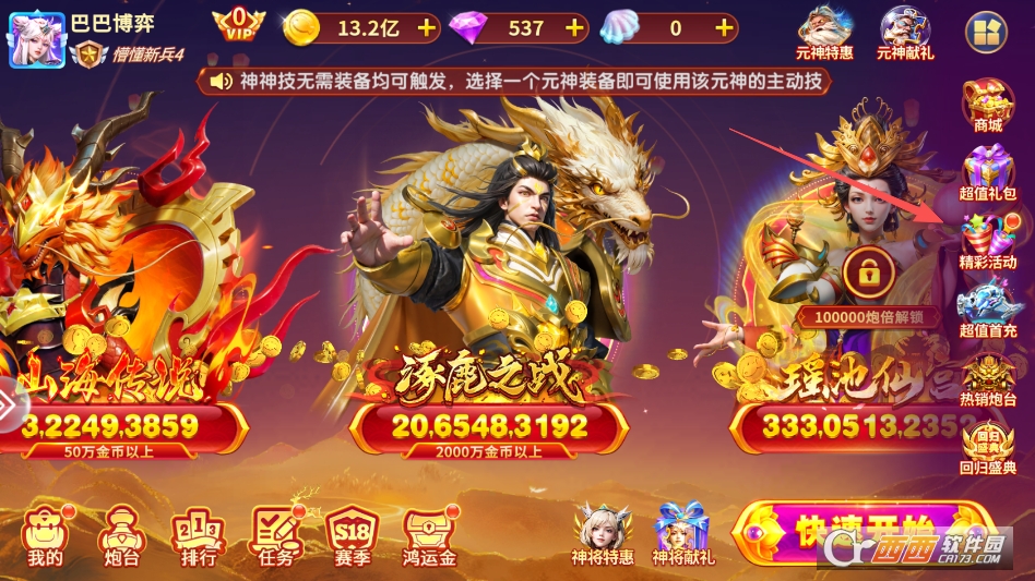 福利覆盖全阶段游玩,登录即送丰厚奖励。新号注册登录就送启航大礼包,内含海量金币、初级炮台与锁定弹、全屏炸弹等实用道具,足够将炮台升级至中阶,轻松应对前期场景与鱼种。