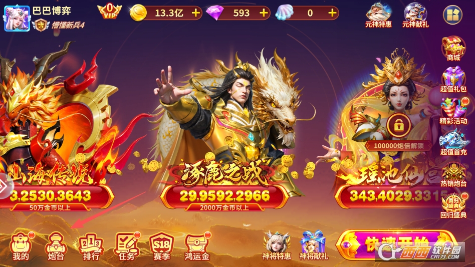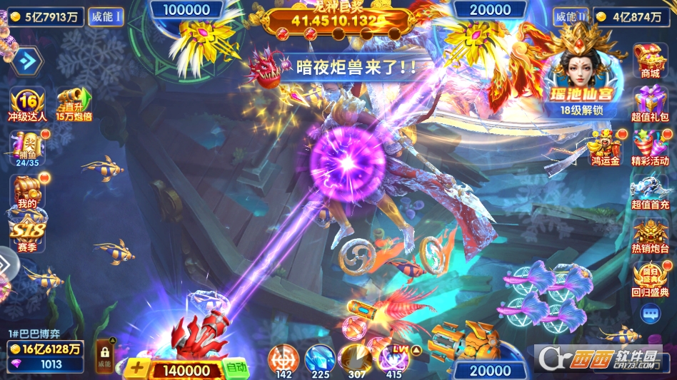 3. 倍率与弹头玩法升级。炮台倍率上限大幅提升,支持亿倍火力连发,大口径炮台带来更强劲的打击感。新增合成弹头玩法,高阶弹头可实现一发千万伤害,搭配狂暴场模式,秒速狂暴触发激光巨炮,一炮清屏爽感翻倍。