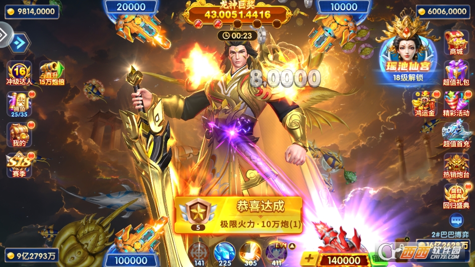天梯竞技模式,每日固定时段开放,玩家需解锁高阶炮台并拥有足够金币才能报名,每天可免费报名一次。比赛中发射固定数量子弹,捕获鱼类获取积分,触发悬赏任务可额外加分,最终按积分排名发放日榜、周榜奖励,实力玩家可凭技巧赢取专属称号与大奖。