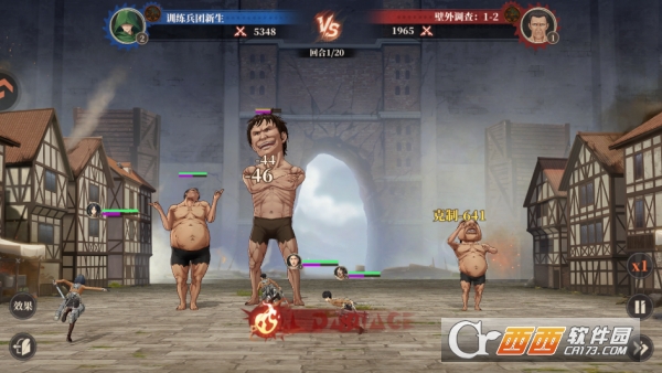 策略与操作结合的战斗:需注重阵容站位(前排坦克扛伤、后排主 C 输出)与出手速度(辅助提速让主 C 先攻击),可自动战斗;新增 “弱点洞悉” 系统,需针对巨人弱点(如铠之巨人硬化后颈)制定战术,兼具策略性与爽感。