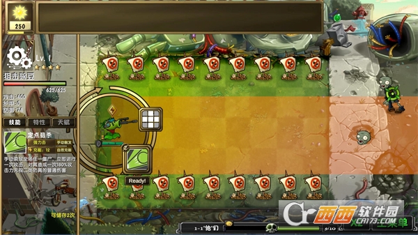 1、坚果:开局先用土豆迫击炮将右上角部分清掉,然后种下豌豆狙击手,如果门框僵尸行动了就用樱桃给炸掉。之后如果别的路有僵尸出现就用狙击手的技能点掉,没有就用技能点红色礼盒,点掉礼盒后可以获得坚果。当下方门框僵尸行动后用坚果挡住,然后用樱桃全部炸掉,之后用豌豆狙击手一个一个点掉就可以通关了。