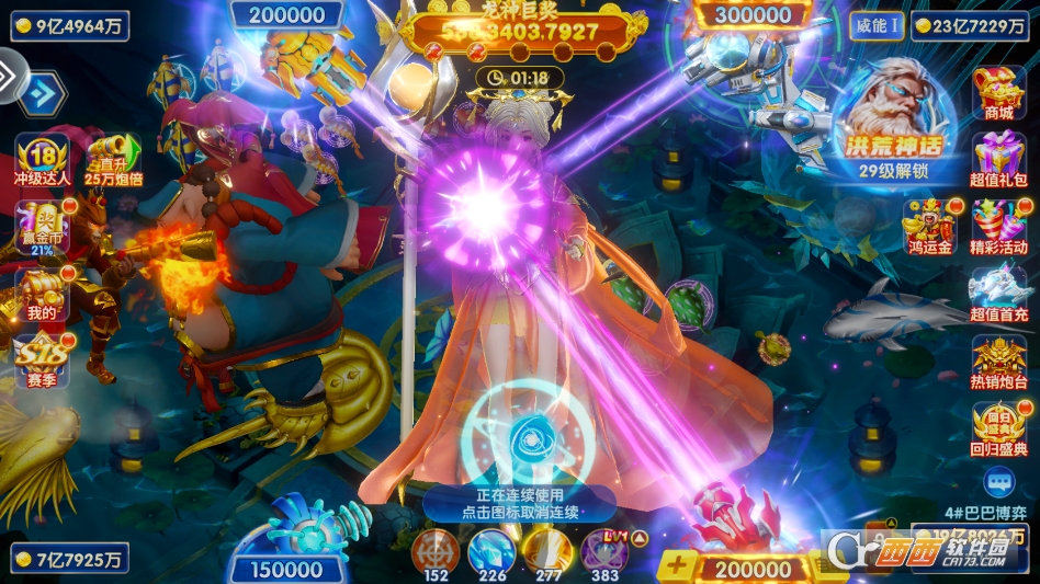 2. 特色玩法触发时机要精准,陨石天降适合在鱼群密集时开启,利用范围爆破效果一箭清屏,优先瞄准小鱼群聚集区域,既能快速攒金币,又能大概率触发连锁爆机。一剑暴富则留到BOSS刷新时使用,锁定BOSS后可轻松斩获高额奖励。