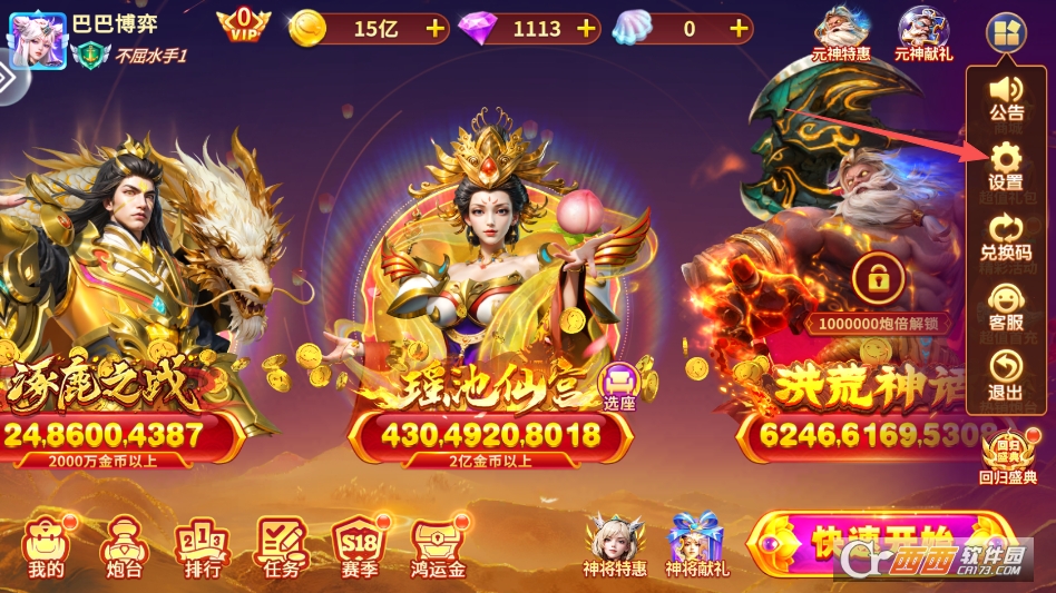 如果游戏太卡了的话可以点击主页右上角的按钮,就能呼出一个额外的菜单,在这个菜单里面找到设置按钮