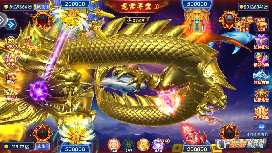 2. 千炮万炮玩法火力拉满,炮台倍率自由调节,万倍炮台开启后威力惊人,击中高分鱼种瞬间满屏爆金。相较于传统固定倍率捕鱼,灵活调整的设定更能适配不同渔场和战斗场景。