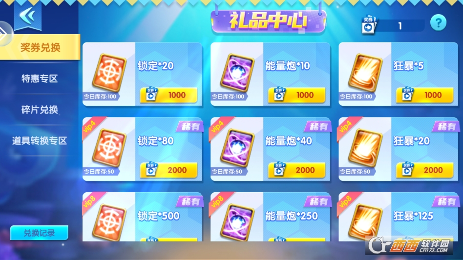 即可跳转到礼品中心来消耗奖券兑换奖品