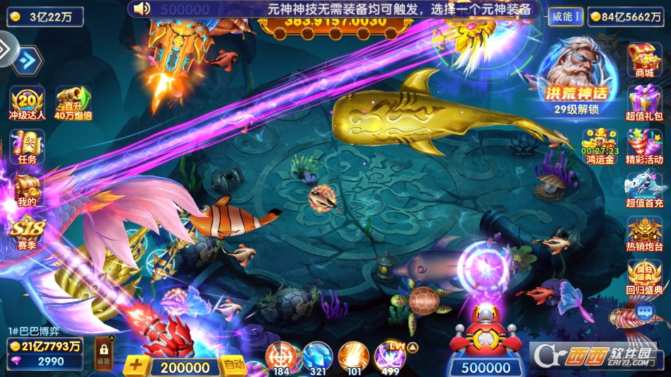 3. 特色活动玩法多样,赛季模式有专属主题地图和任务,完成目标可解锁赛季奖励。随机触发的龙宫寻宝、蟠桃盛宴等小游戏,能额外获取海量金币,为捕鱼提供充足资源支撑。