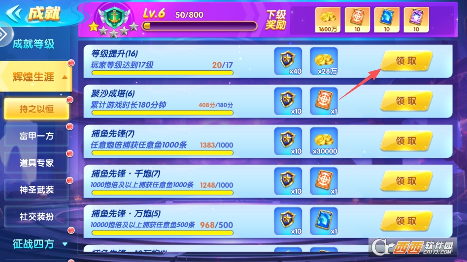 可以查看所有成就,完成的成就还可以直接一键领取奖励