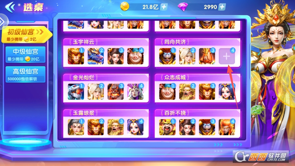 需要在18级及以上的房间中才能自己选择房间,点击渔场右下角的选座按钮