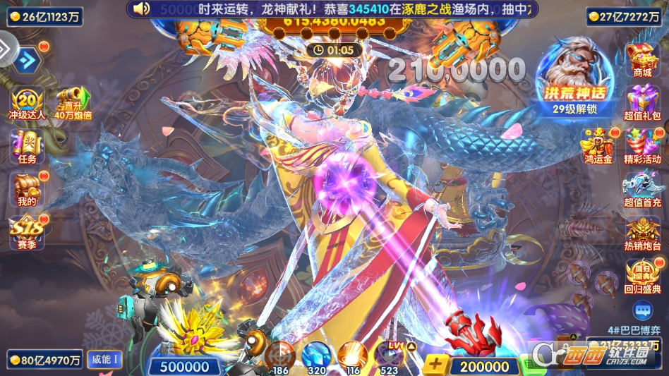 特色BOSS与道具系统加分明显,上古神兽盘古、祝融,机甲海怪等专属BOSS定期刷新,击败后可获得海量积分与稀有道具。冰冻、锁定、能量炮等道具功能独特,合理搭配使用能大幅提升捕获效率,尤其是能量炮可实现大范围收割,助力快速积累积分。