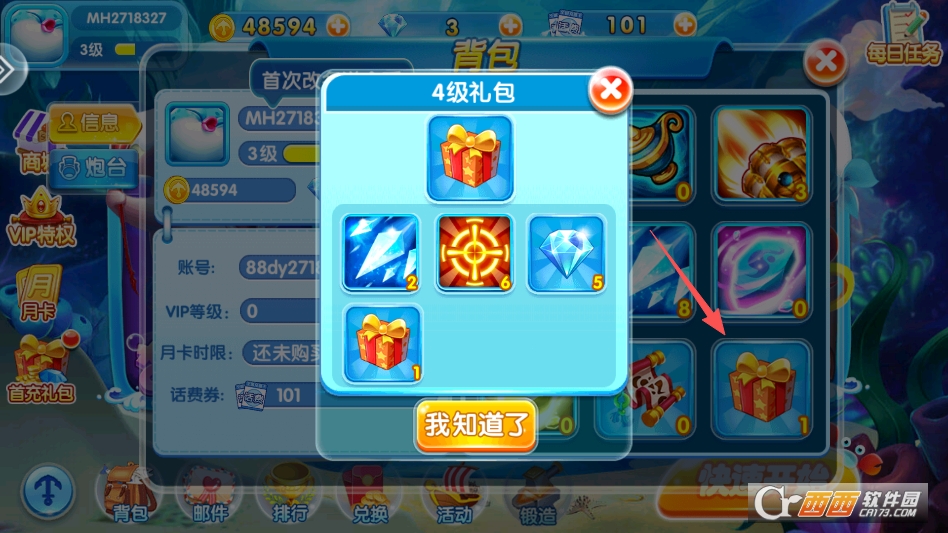 如果获得了礼包但是不知道如何使用,可以点击游戏主界面左下角的背包