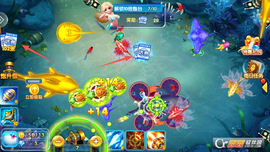 我们只需要像打鱼一样打掉它,就能获得话费券