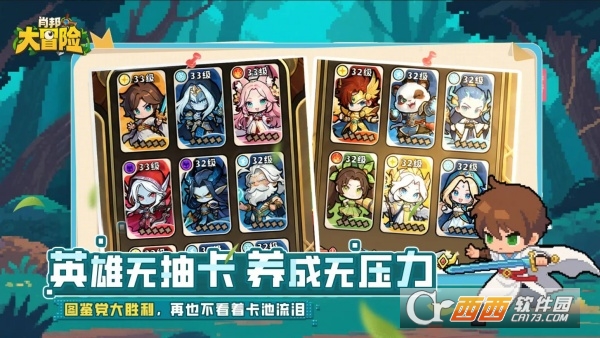 无抽卡养成体系,所有英雄通过升级、通关解锁全图鉴,养成压力低,适配图鉴收集爱好者。无需为抽卡消耗资源,英雄强化仅需对应碎片,平民玩家也能轻松培养满配阵容,享受收集乐趣。