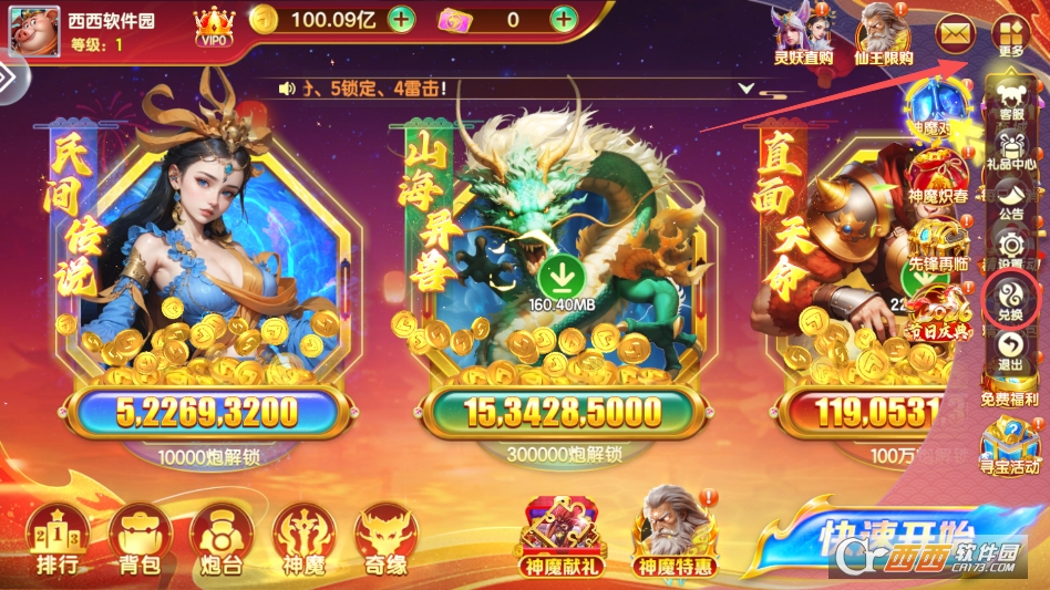 3. 神话元素融入创新,将青龙、孙悟空等神话人物设计为专属BOSS,搭配仙剑激光等高科技捕鱼模式,打破传统捕鱼玩法局限,视觉与玩法双重创新。