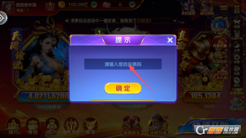 进入兑换码界面,点击一下即可输入兑换码来兑换奖励