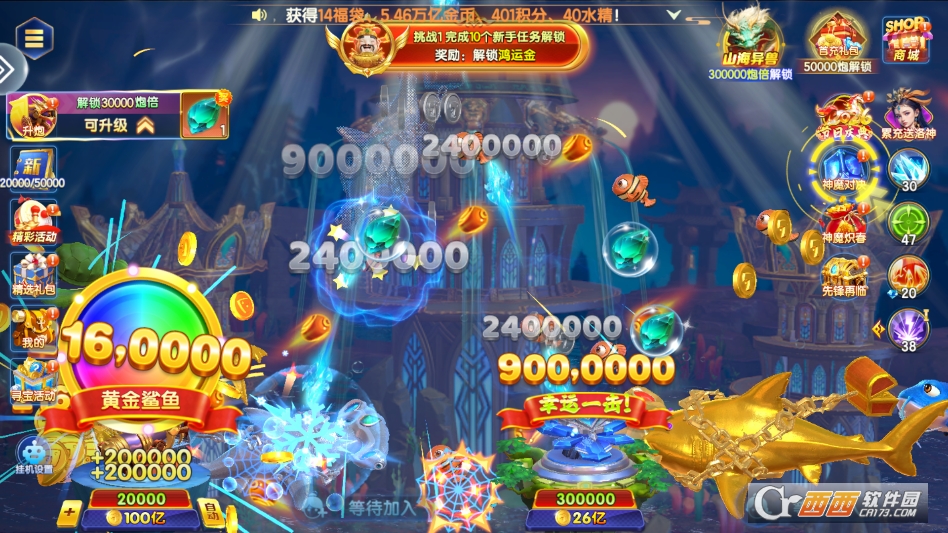 可玩性极高,超高爆率加持让捕鱼过程爽快十足,即使是低倍率炮台也能稳定收获金币,不用刻意氪金也能体验一炮爆屏的快感。战斗中可灵活运用点射、扫射与反弹技巧,通过炮弹反弹绕过小鱼直击目标,策略性操作让捕鱼不再是单纯靠运气。