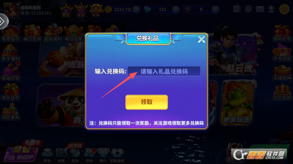 我们在主页,点击左侧的免费金币按钮,会出来一个列表,我们再点击列表最后边的礼品兑换选项