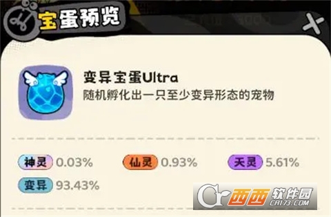 4、宝蛋分为三种,正常宝蛋是显示什么形态只能开到什么形态的宠物。宝蛋Pro为当前冒险关卡的宝蛋,21之后可以开出天灵,31之后可以开出仙灵,51之后可以开出神灵。宝蛋Ultra为冒险80关宝蛋,一般只能充值获取。