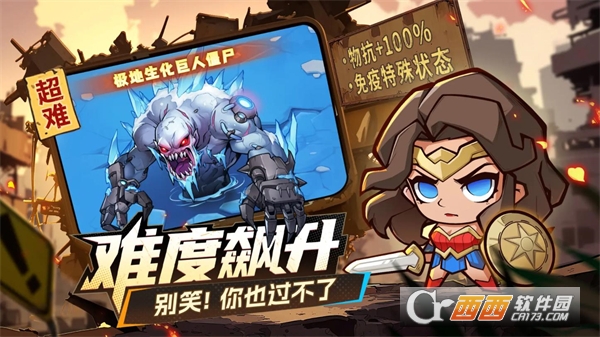 组建 4 人英雄小队闯关,涵盖战士、射手、法师等 7 大职业,需搭配 “前排抗伤 + 核心输出 + 辅助增益” 等阵容应对尸潮。关卡分为普通、精英、BOSS 战三类,波次从 10 到 20 不等,后期关卡会出现极地生化巨人僵尸等特殊敌人,需针对性调整阵容配置才能高效通关。