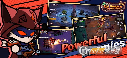 萌系风格与沉浸氛围:以可爱猫咪为主角,搭配 2D 像素与精致漫画风格画面,技能动画炫酷(如雷电特效),配合轻松欢快的背景音乐,营造 “治愈 + 刺激” 的双重冒险氛围,兼顾视觉与听觉体验。