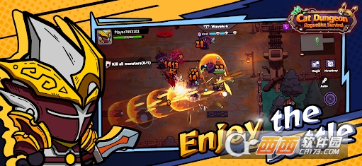地牢探索与战斗:玩家操控猫咪角色深入随机生成的地牢,通过左侧摇杆移动,靠近怪物自动触发战斗,右侧可手动释放技能或开启自动战斗;以波次挑战为核心关卡形式,需击杀当前波次所有怪物才能推进,同时需兼顾解谜元素,通过观察环境线索解锁区域、获取宝藏。