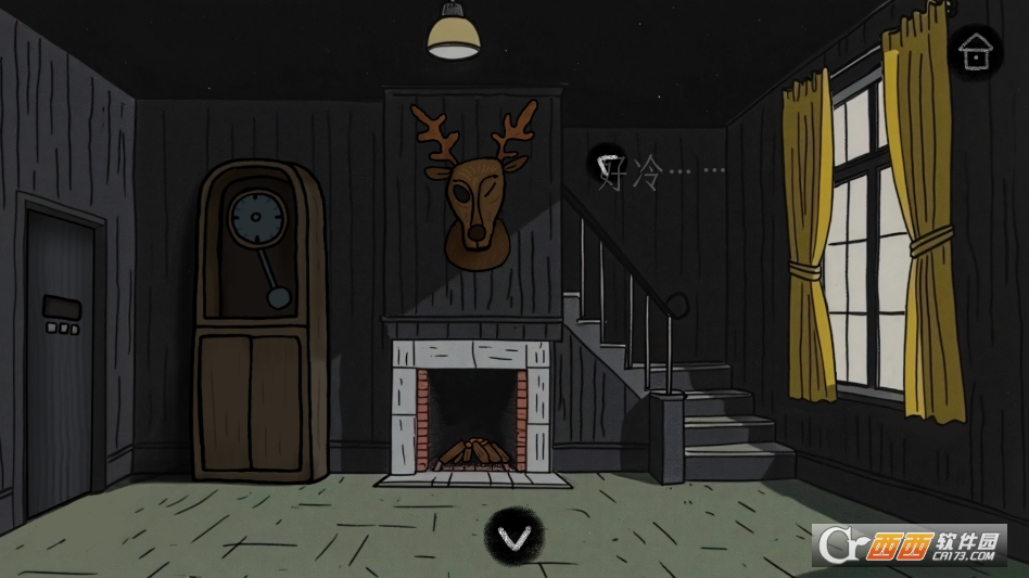 进入一楼客厅,对壁炉使用火柴,对麋鹿头使用眼珠,获得柜子钥匙。